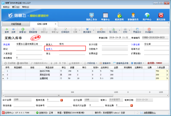 信管飛RMS軟件、信管飛倉庫管理軟件等默認開單的經手人或業務員不允許為空,如果您在開單時不需要錄入經手人或業務員,支持在軟件中進行設置。
